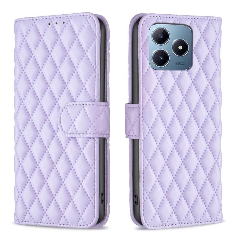 Θήκη τηλεφώνου τύπου πορτοφολιού με δερμάτινη επένδυση και σχέδιο διαμαντένιου πλέγματος για Realme C61 / C63 (Λευκό)
