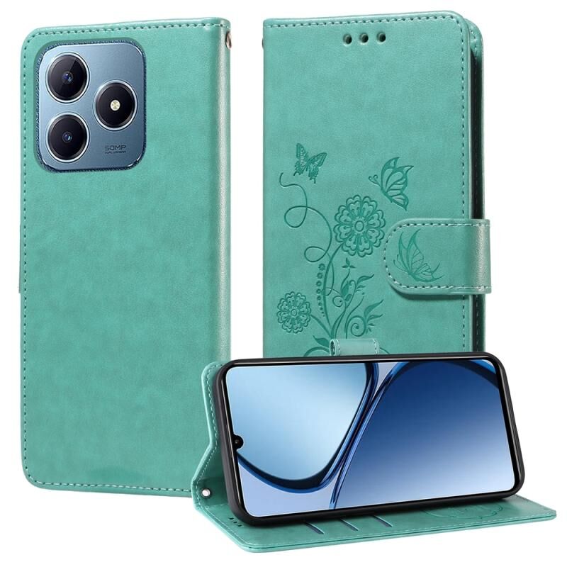 For Realme C61 / C63 / Note 60 Embossed Butterfly Flowers Leather Phone Case(Green)