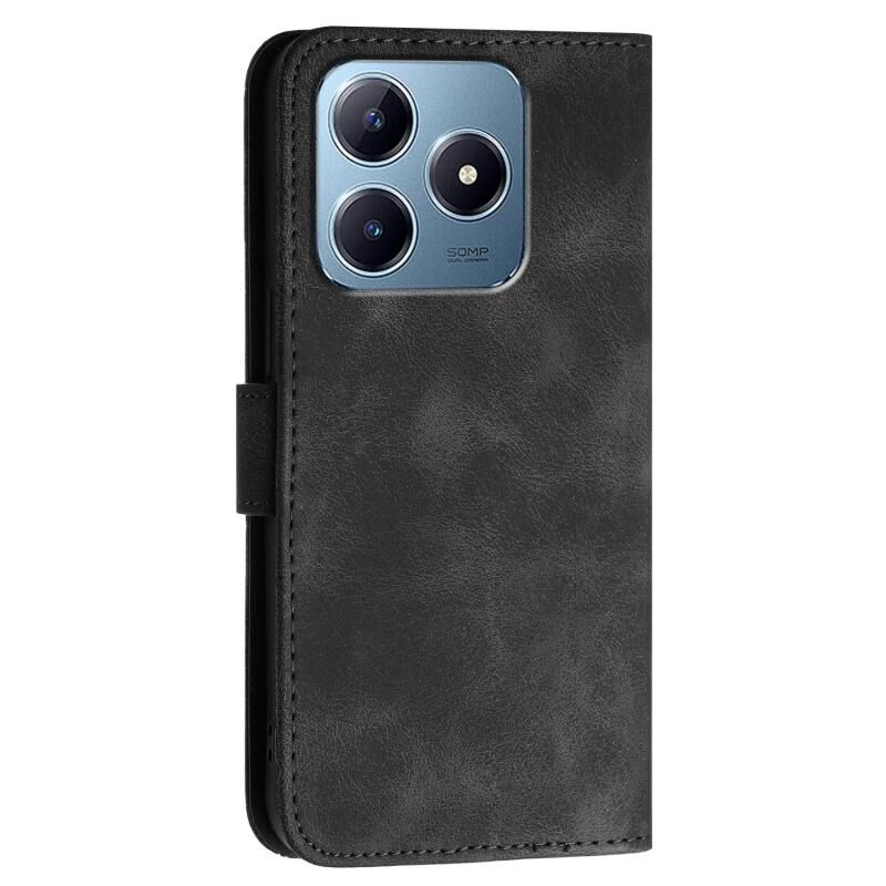 For Realme C61 Global Grid Butterfly Embossed Pattern Leather Phone Case with Lanyard(Black)