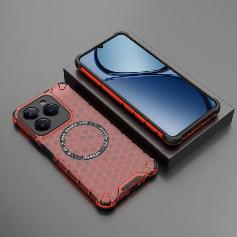 Για Realme C61 Global Honeycomb μαγνητικό δαχτυλίδι Shockproof τηλέφωνο υπόθεση (κόκκινο)
