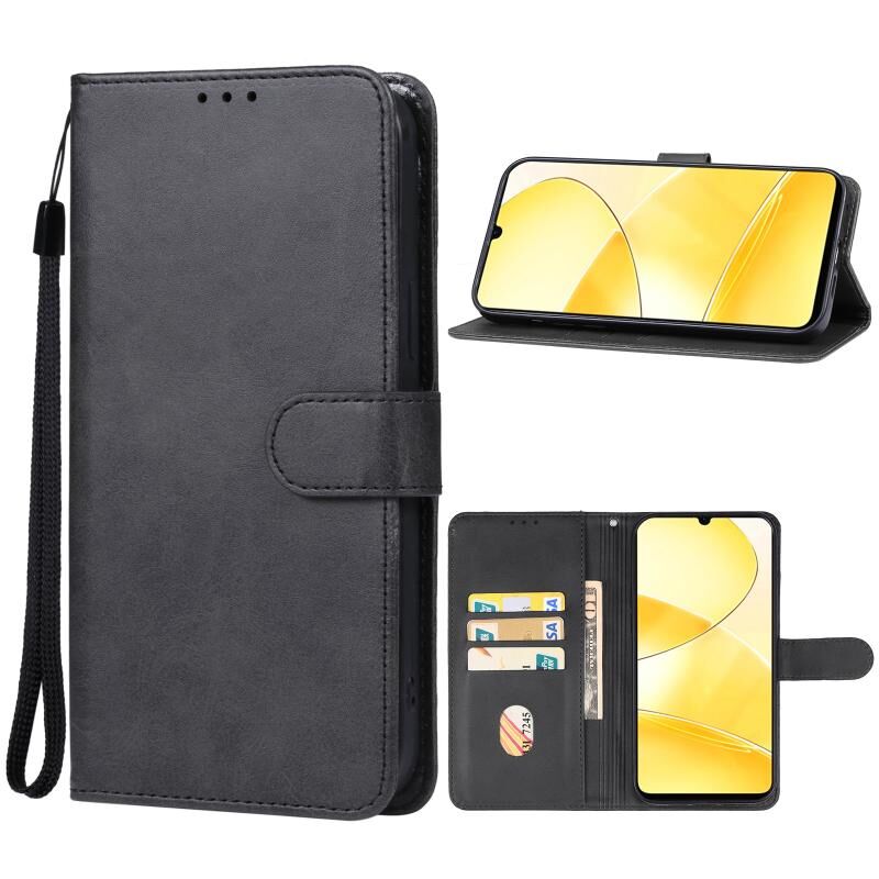 Για Realme C61 Δερμάτινη θήκη τηλεφώνου (Μαύρο)