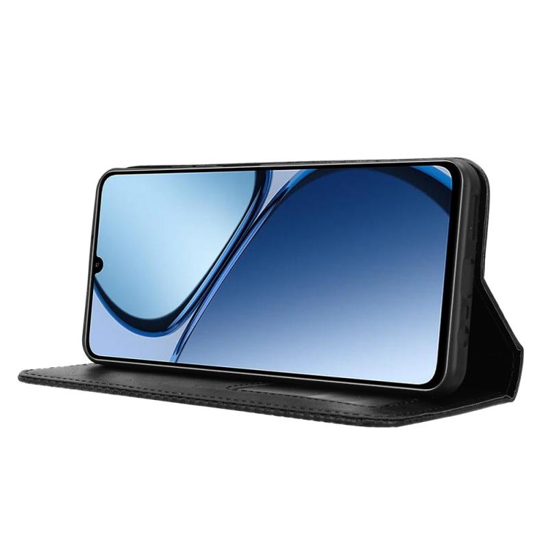 For Realme C63 4G / C61 4G / Narzo N63 4G Magnetic Buckle Retro Texture Leather Phone Case(Black)