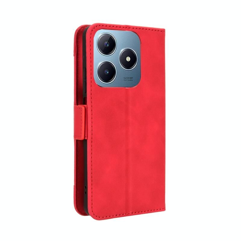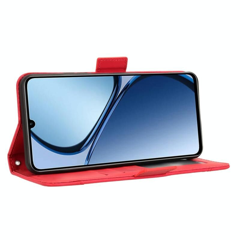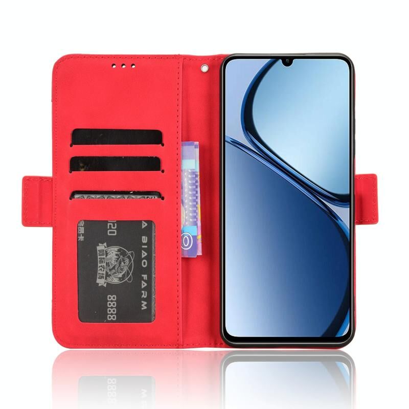 Για Realme C63 4G / C61 4G / Narzo N63 4G δέρμα αίσθηση μοσχάρι υφή κάρτα υποδοχές δερμάτινη θήκη τηλεφώνου (κόκκινο)