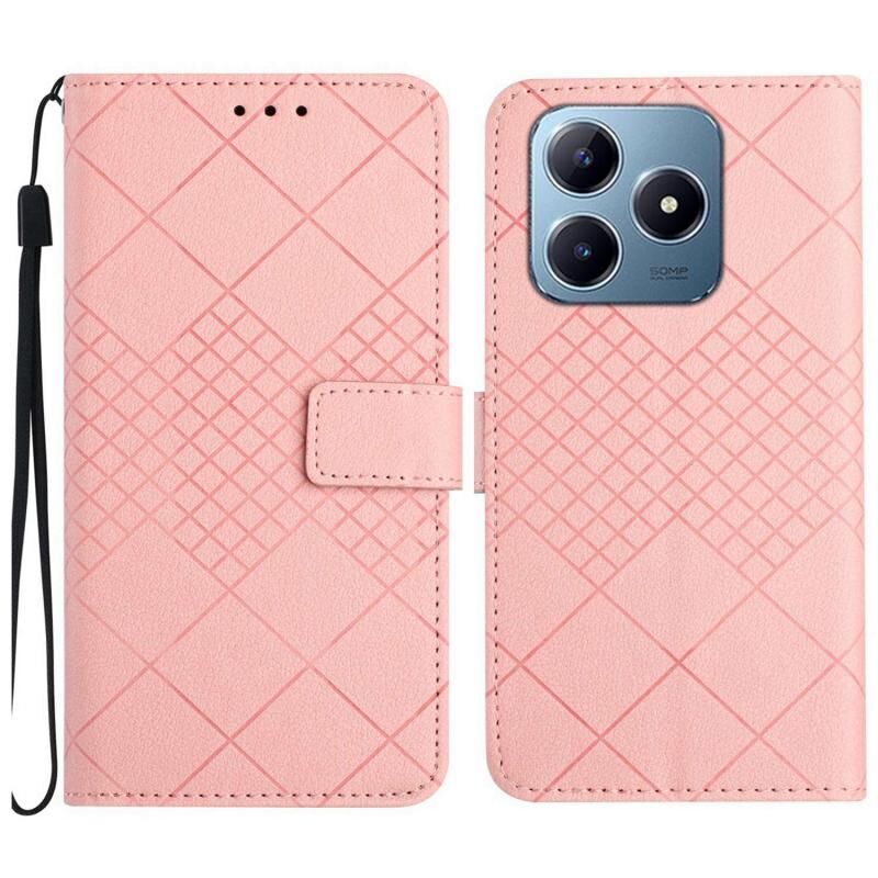 Για Realme C63 4G Global/ C61 Rhombic Grid Texture Leather Phone Case (ροζ)