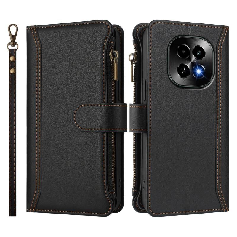 For Realme C63 5G Global Magnetic Closure 9 Card Slots Zipper Leather Case with Hand Strap(Black)