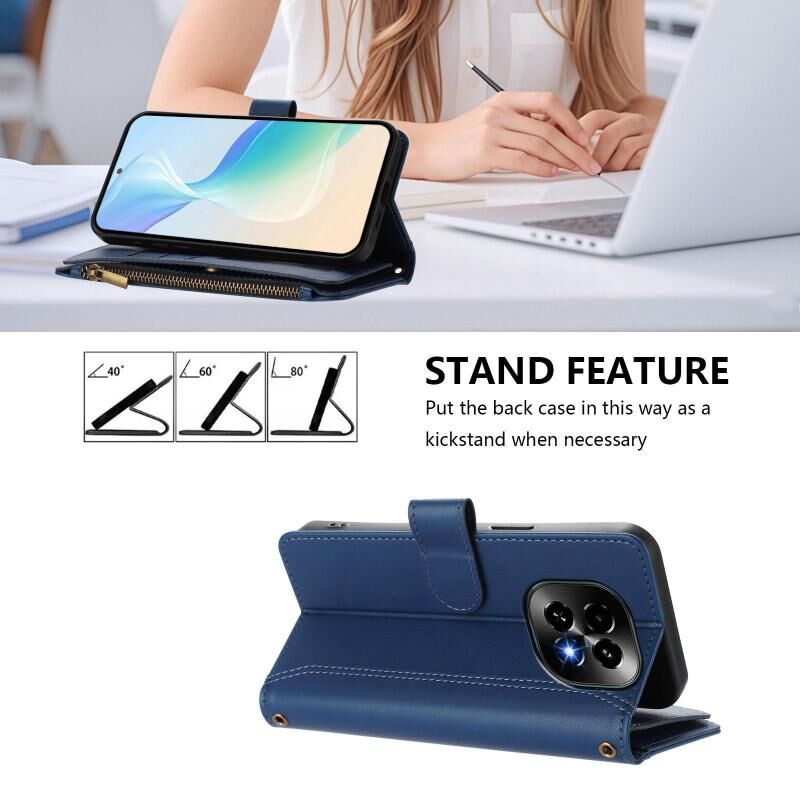 For Realme C63 5G Global Magnetic Closure 9 Card Slots Zipper Leather Case with Hand Strap(Dark Blue)