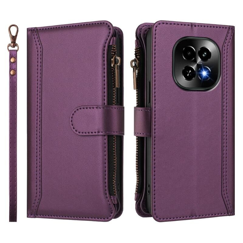 For Realme C63 5G Global Magnetic Closure 9 Card Slots Zipper Leather Case with Hand Strap(Purple)