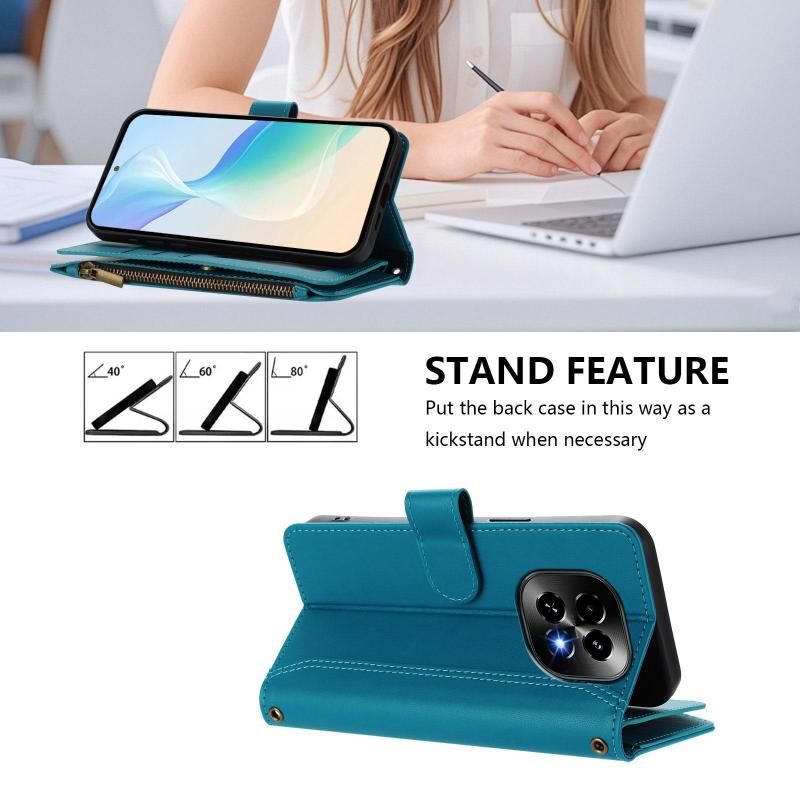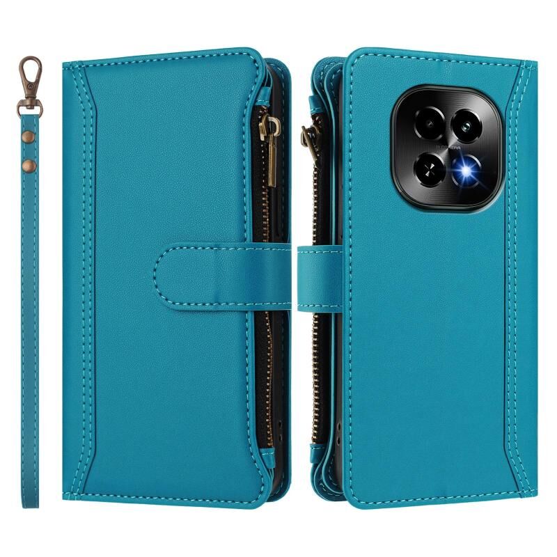 For Realme C63 5G Global Magnetic Closure 9 Card Slots Zipper Leather Case with Hand Strap(Turquoise)
