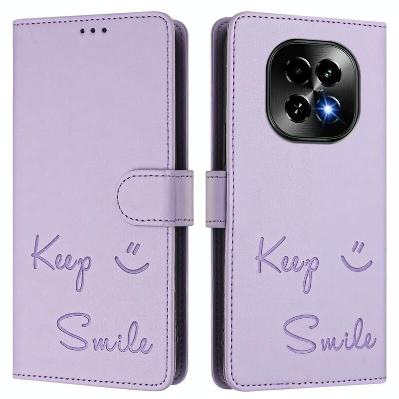 Για Realme C63 5G Παγκόσμια χαμόγελο ανάγλυφο RFID δερμάτινη θήκη τηλεφώνου (Light Purple)