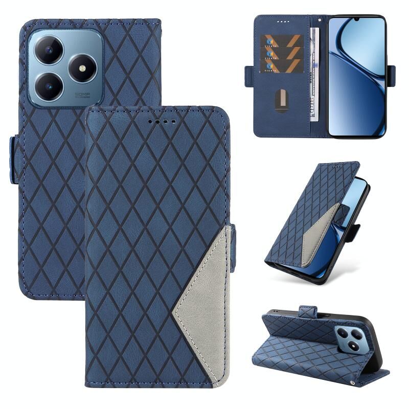 Για Realme C63 / C61 Global Διπλό χρώμα Rhombic Lattice δερμάτινη θήκη τηλεφώνου (μπλε)