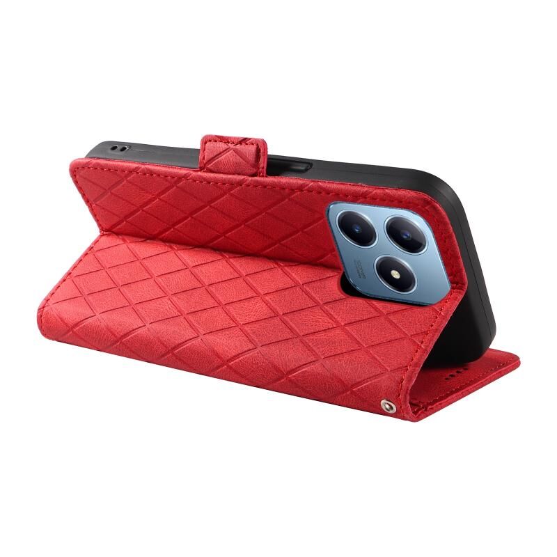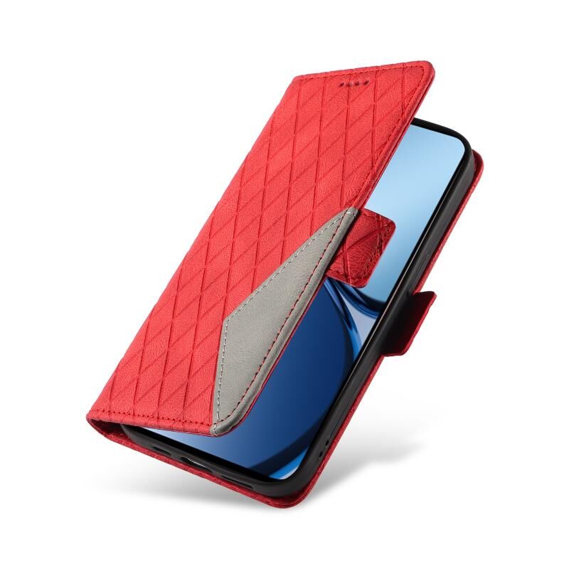 Για το Realme C63 / C61 Global Dual-color Rhombic Lattice δερμάτινη θήκη τηλεφώνου (κόκκινο)