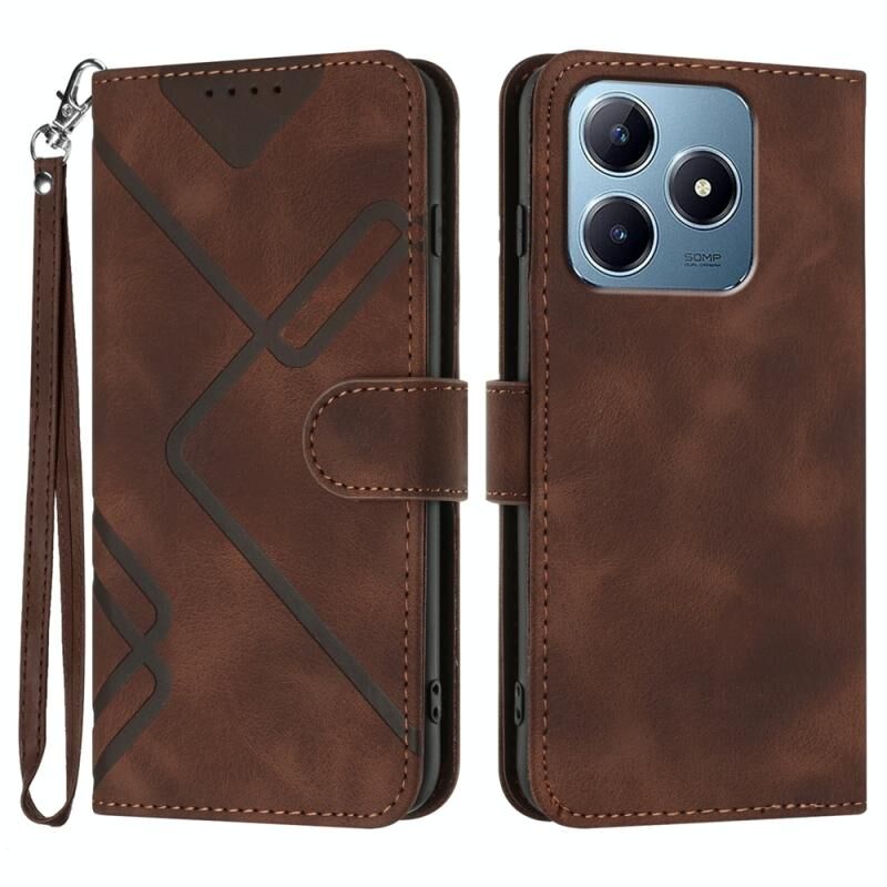 Για Realme C63 / C61 Παγκόσμια γραμμή μοτίβο δέρμα αίσθηση δέρμα τηλέφωνο υπόθεση (καφέ)
