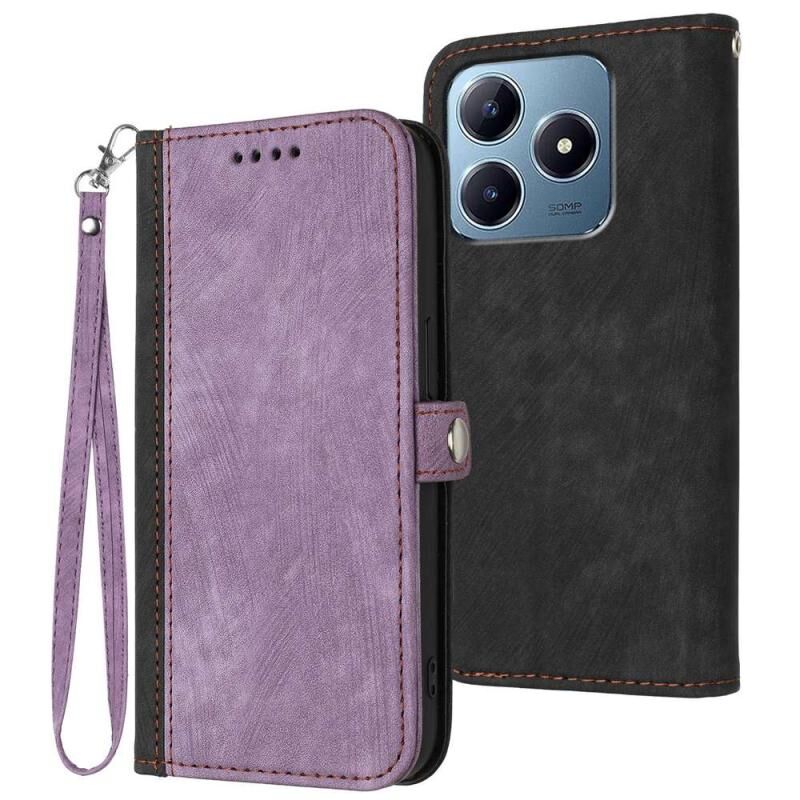 Για Realme C63 / C61 Παγκόσμια πλευρά πόρπη διπλή πτυχή χέρι λουράκι δερμάτινη θήκη τηλεφώνου (μωβ)