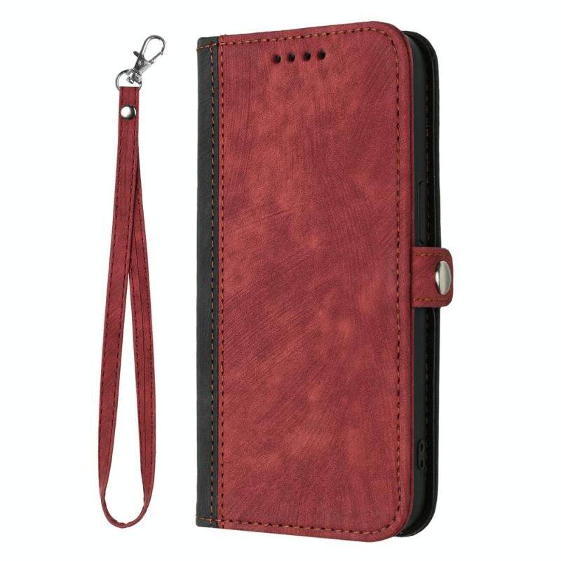 Για Realme C63 / C61 Παγκόσμια πλευρά πόρπη διπλή πτυχή χέρι λουράκι δερμάτινη θήκη τηλεφώνου (κόκκινο)