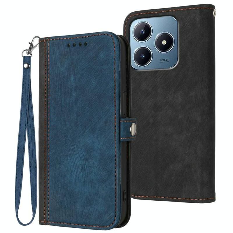 Για Realme C63 / C61 Παγκόσμια πλευρά πόρπη διπλή πτυχή χέρι λουράκι δερμάτινη θήκη τηλεφώνου (Royal Blue)