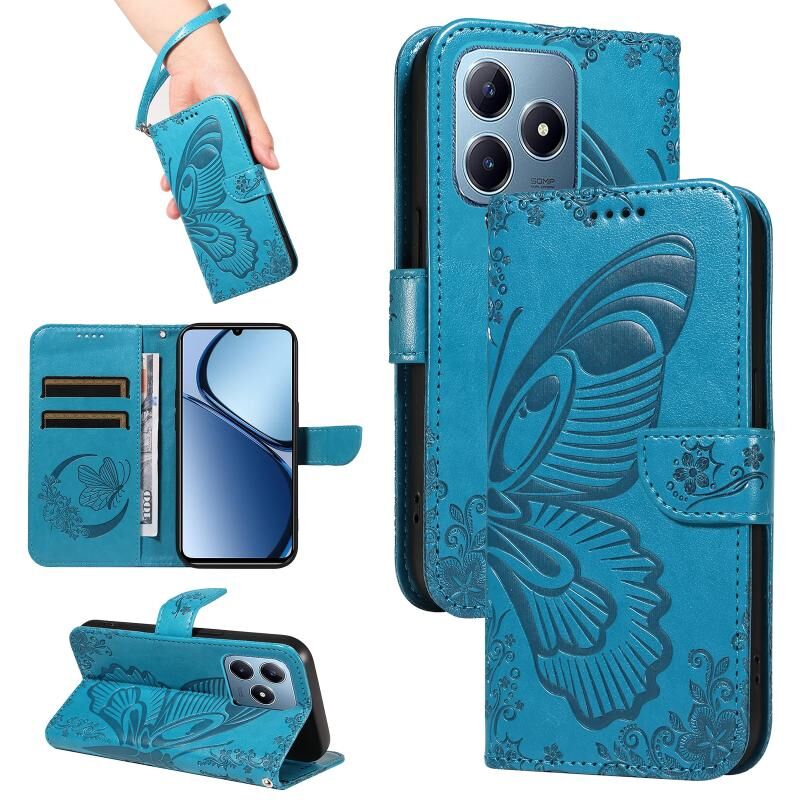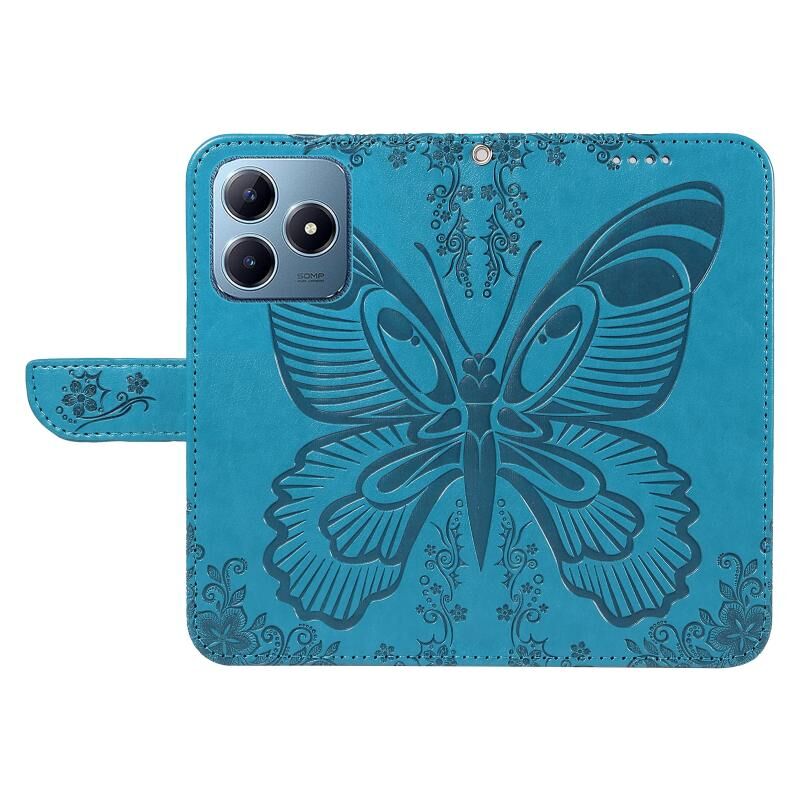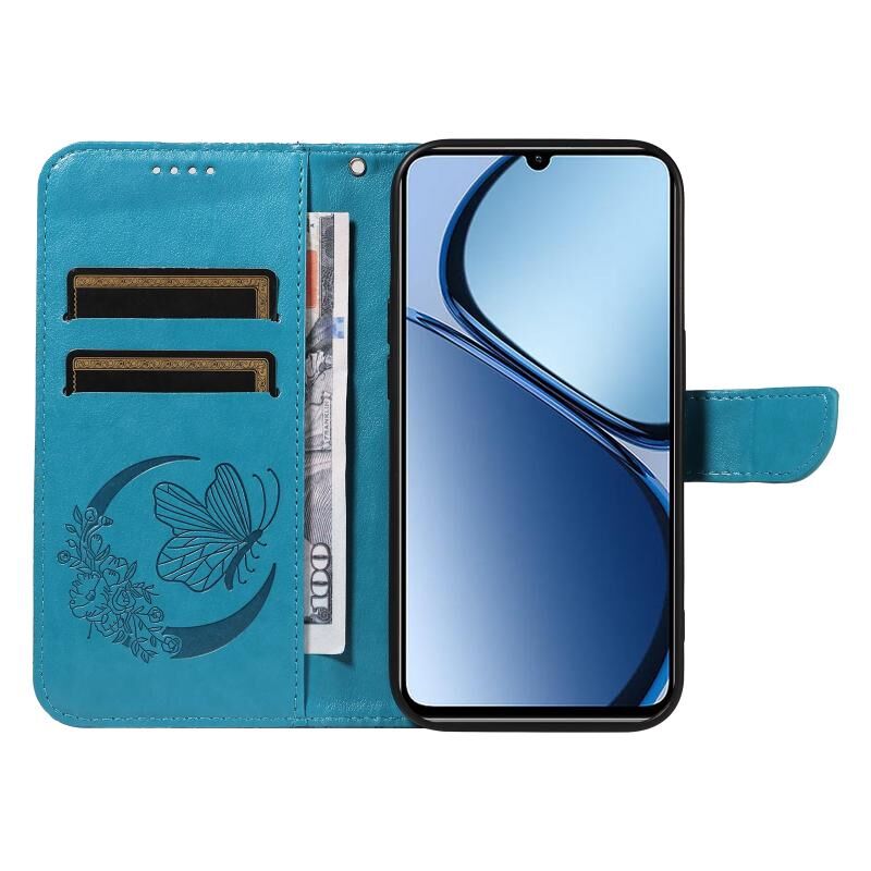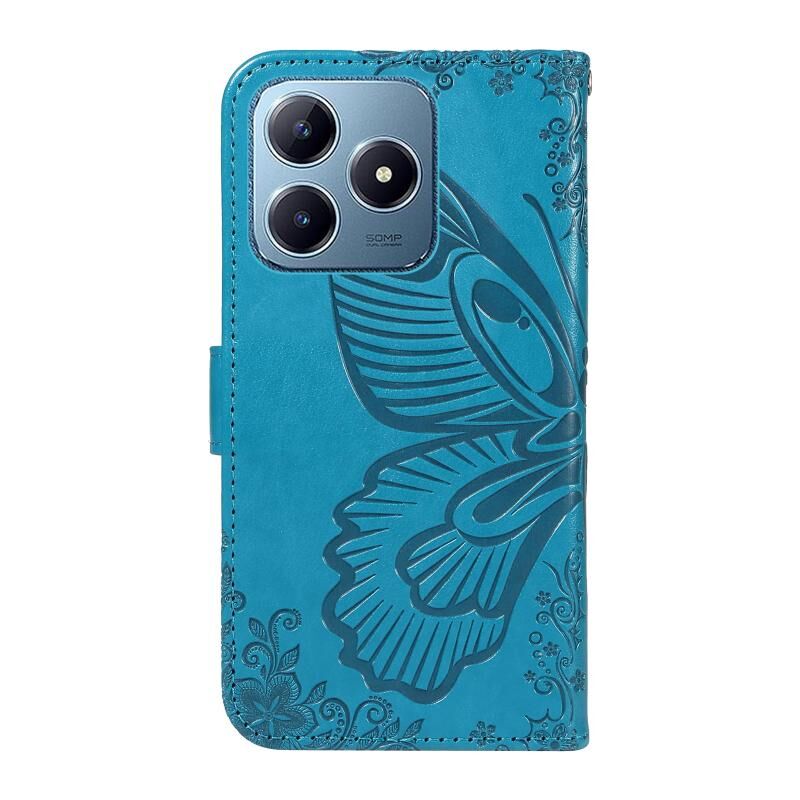 Θήκη τηλεφώνου από δέρμα με ανάγλυφο σχέδιο πεταλούδας Swallowtail για Realme C63 / C61 (Μπλε)