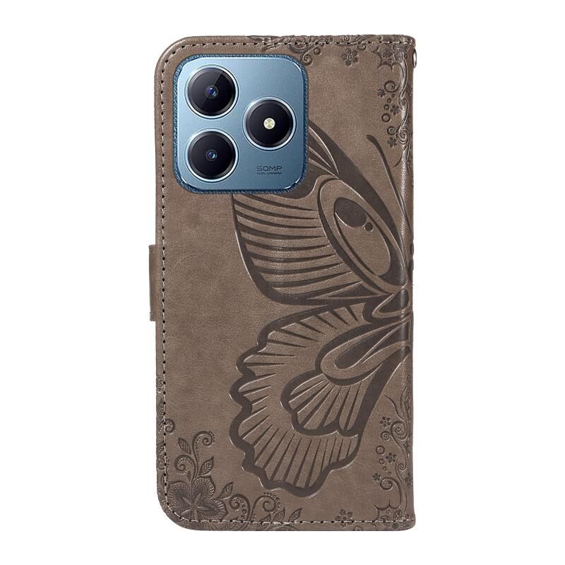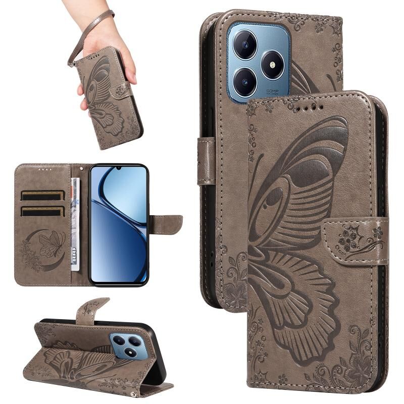 For Realme C63 / C61 Global Swallowtail Butterfly Embossed Leather Phone Case(Grey)