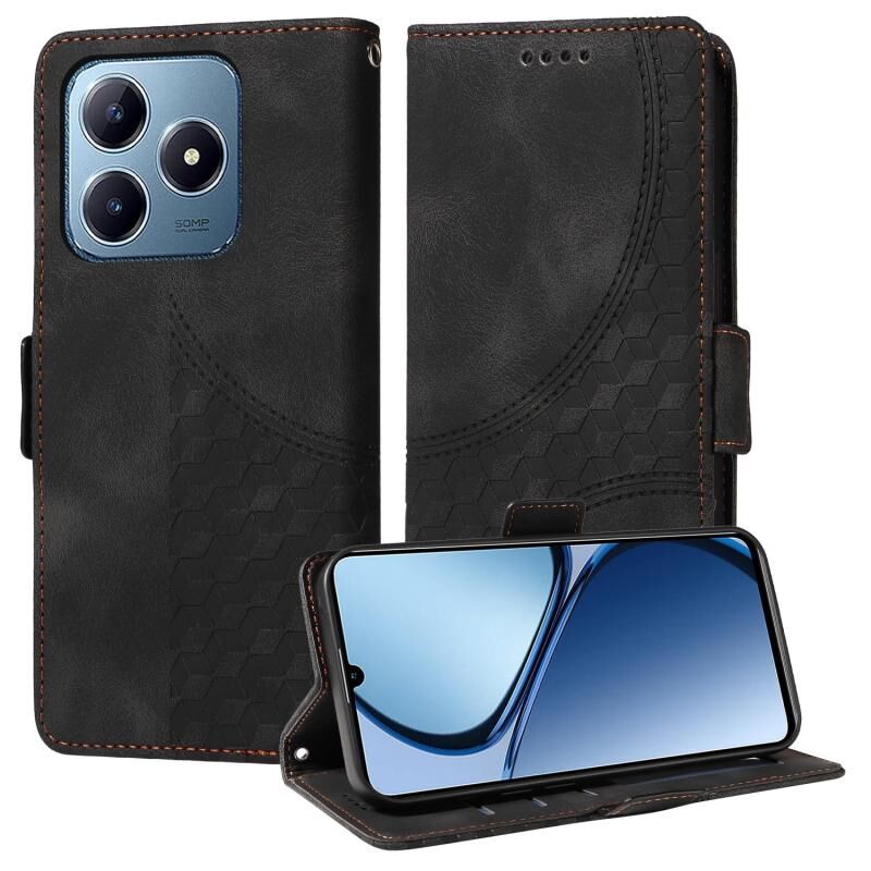 For Realme C63 / C61 / Note 60 Embossed Rhombus Starry Leather Phone Case(Black)