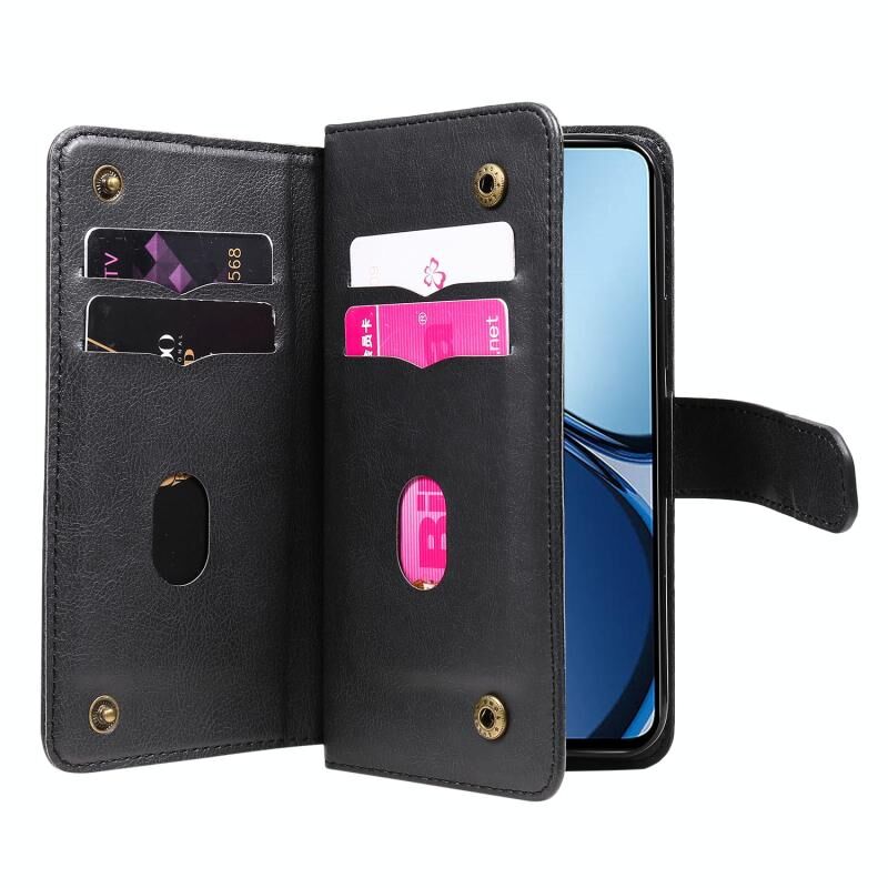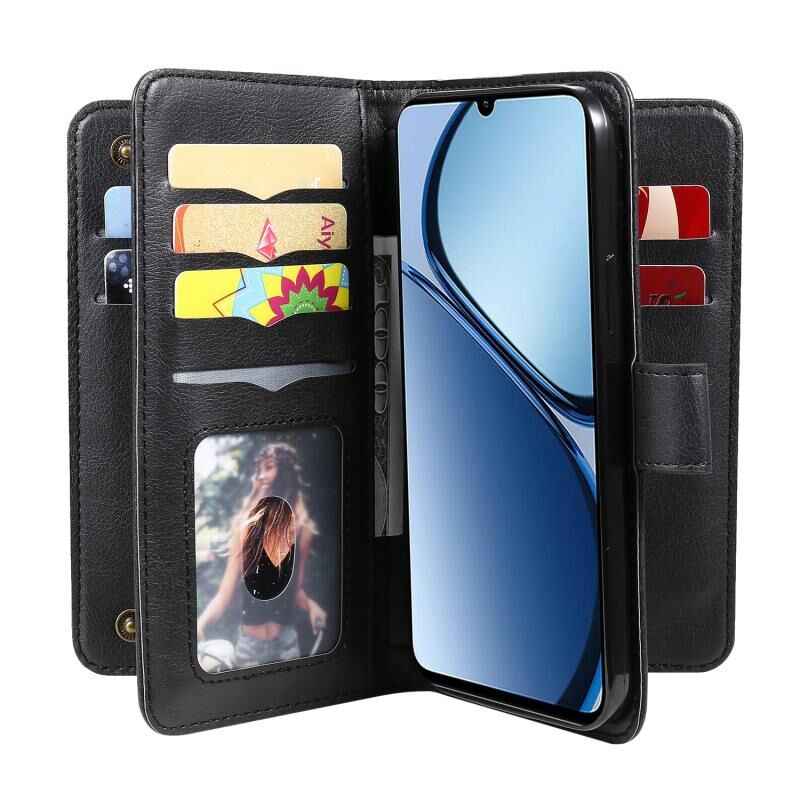 Για Realme C63 / C61 / Σημείωση 60 Πορτοφόλι πολλαπλών λειτουργιών 10 υποδοχές καρτών Δερμάτινη θήκη τηλεφώνου (μαύρο)