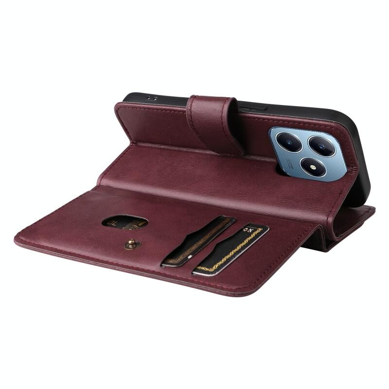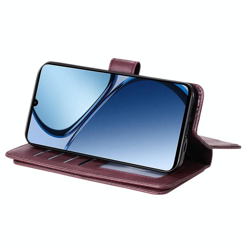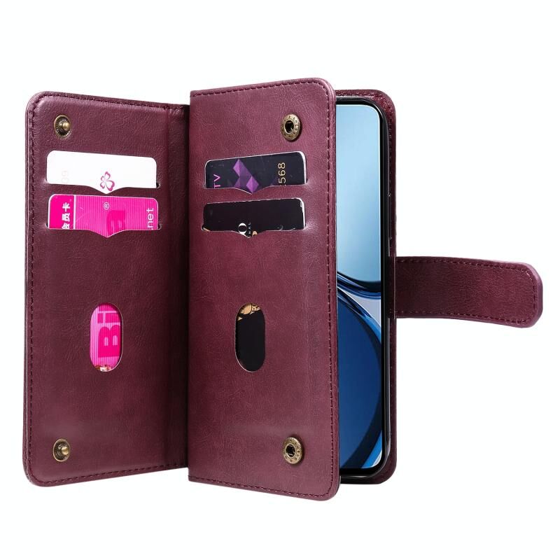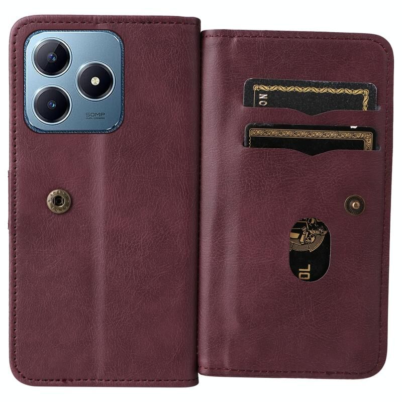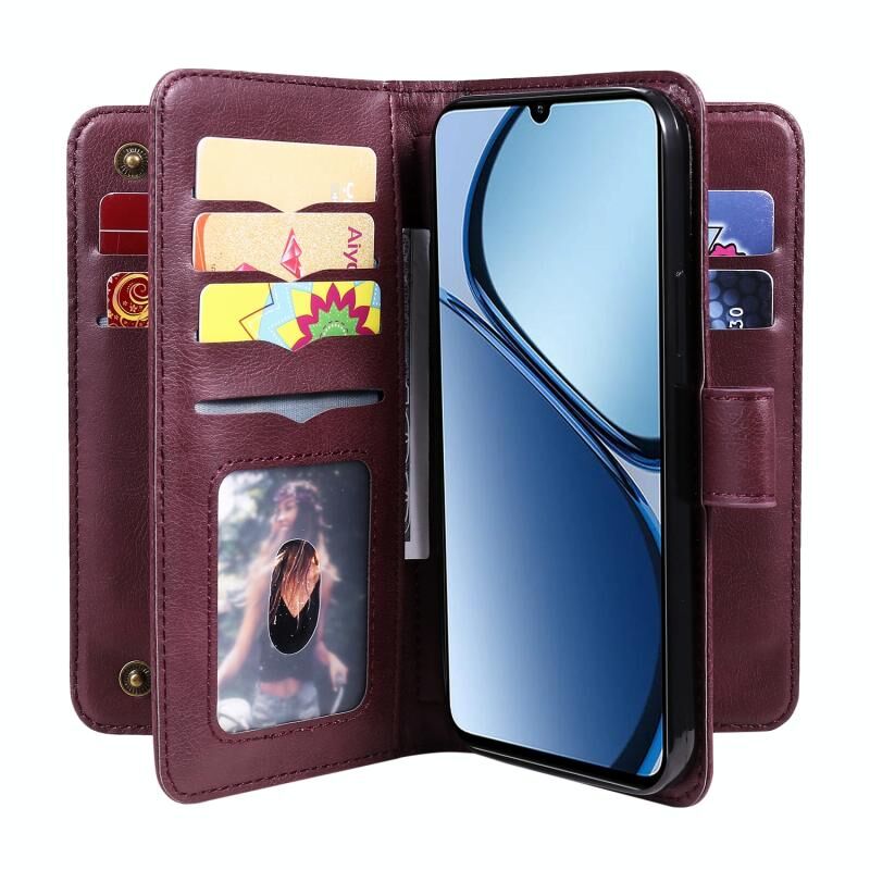 Για Realme C63 / C61 / Note 60 Πορτοφόλι πολλαπλών λειτουργιών 10 υποδοχές για κάρτες Δερμάτινη θήκη τηλεφώνου (Claret)