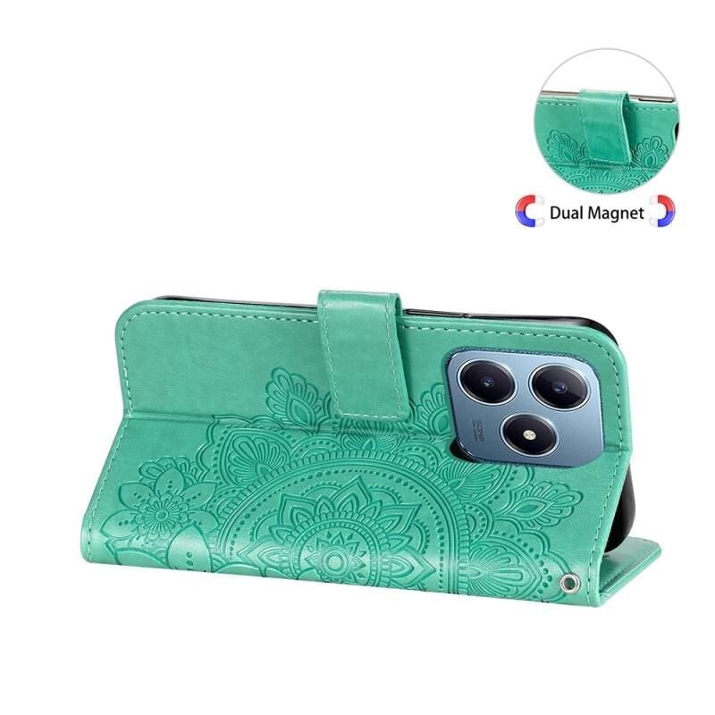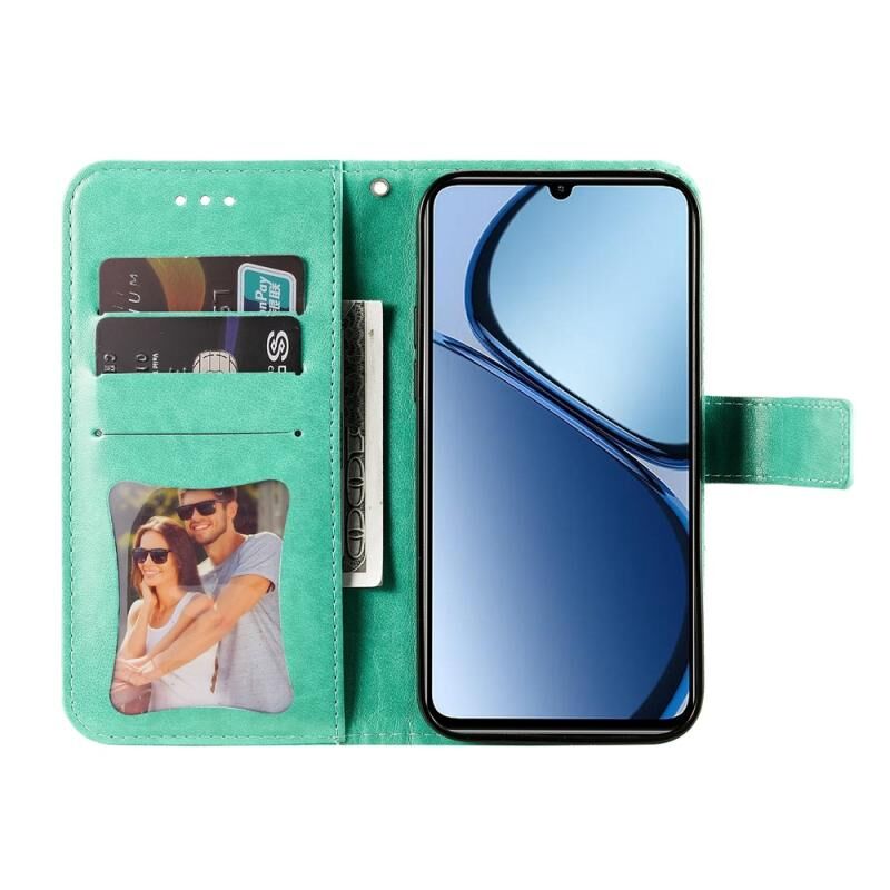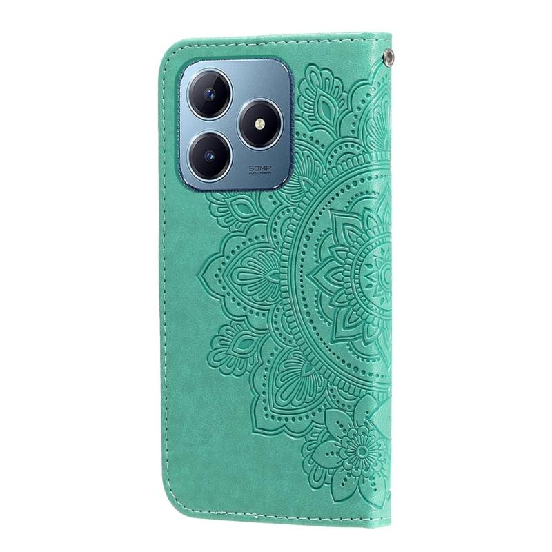 For Realme C63 / C61 / Note 60 Seven-petal Flowers Embossing Leather Phone Case(Green)