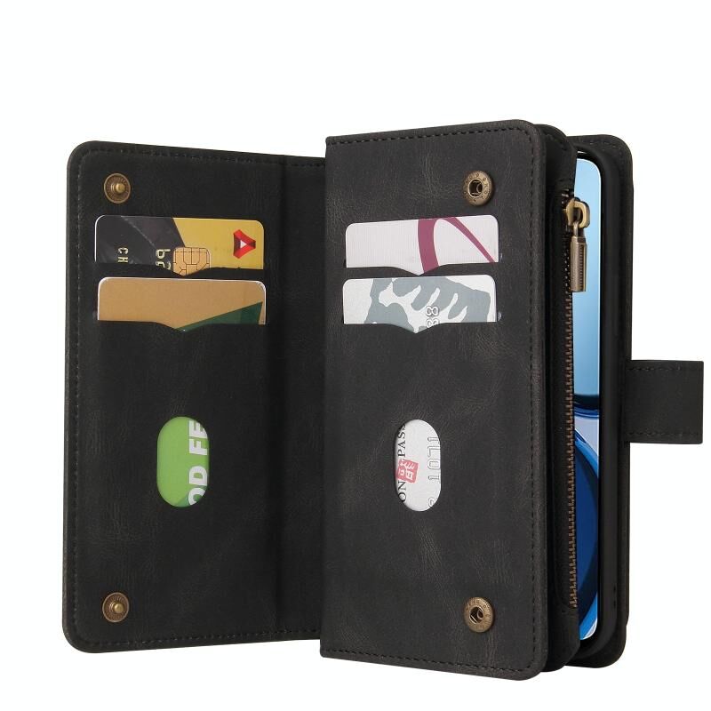 Για Realme C63 / C61 / Σημείωση 60 δέρμα αίσθηση πολλαπλών καρτών υποδοχές φερμουάρ πορτοφόλι δερμάτινη θήκη τηλεφώνου (μαύρο)
