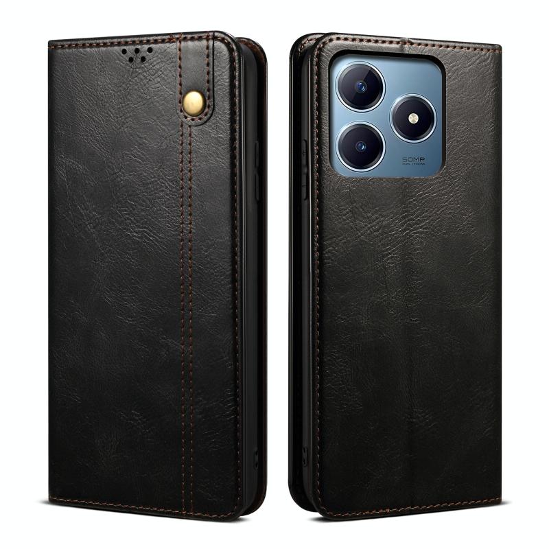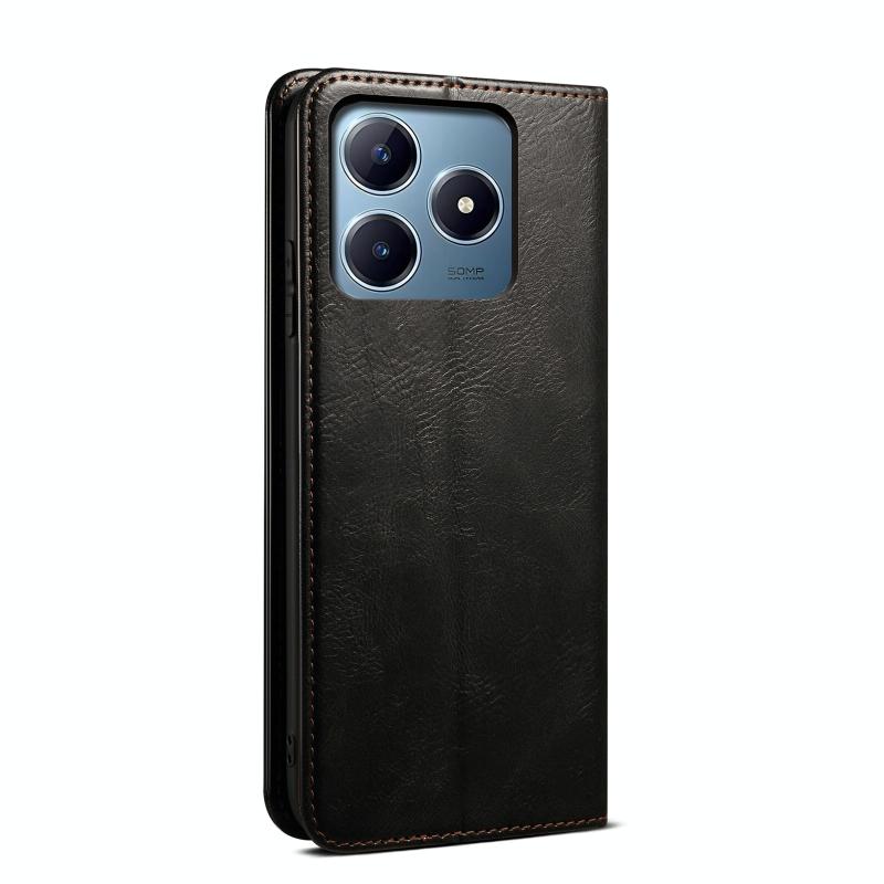Θήκη τηλεφώνου από δέρμα με υφή Crazy Horse και κερί λαδιού για Realme C63 / C61 (Μπλε)