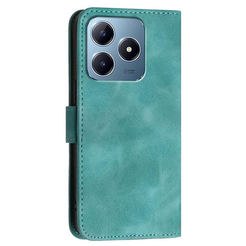 For Realme C63 Global Grid Butterfly Embossed Pattern Leather Phone Case with Lanyard(Light Blue)