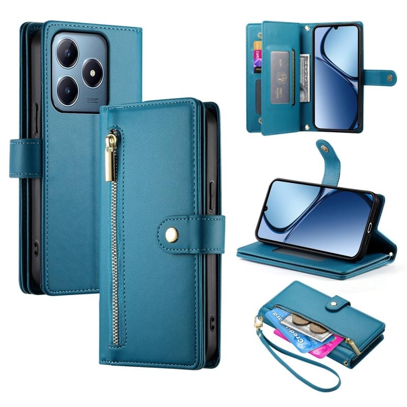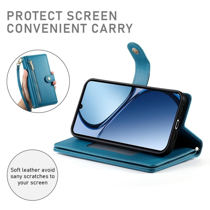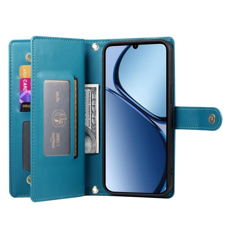 For Realme C63 Nine Card-slot Zipper Wallet Bag Leather Phone Case(Blue)