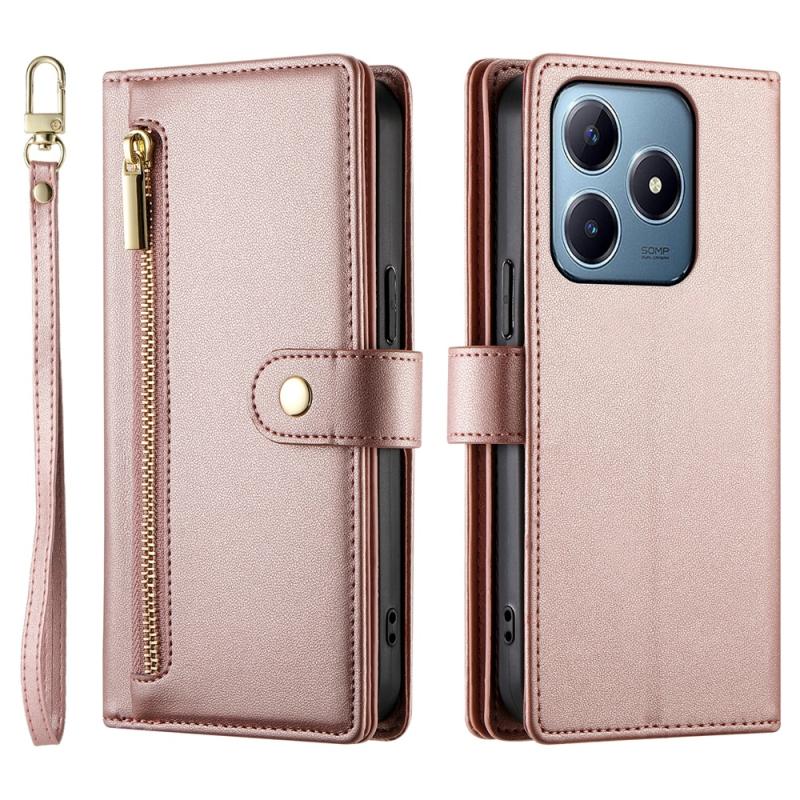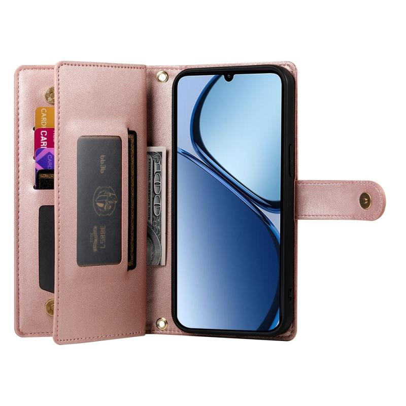 For Realme C63 Nine Card-slot Zipper Wallet Bag Leather Phone Case(Pink)