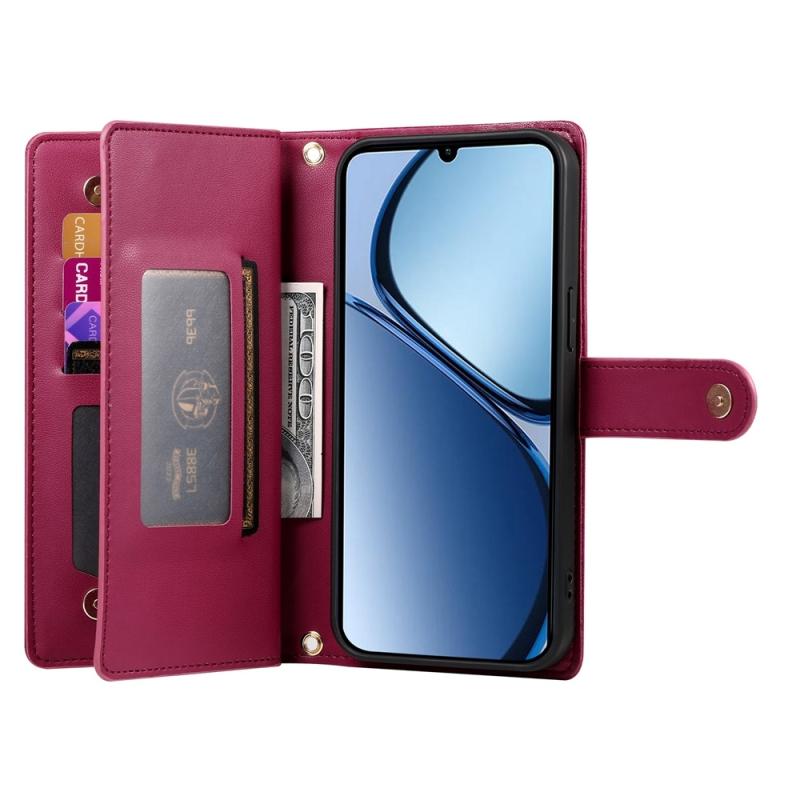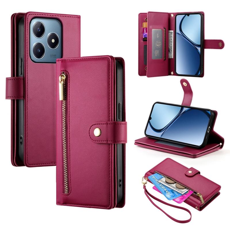 For Realme C63 Nine Card-slot Zipper Wallet Bag Leather Phone Case(Red)