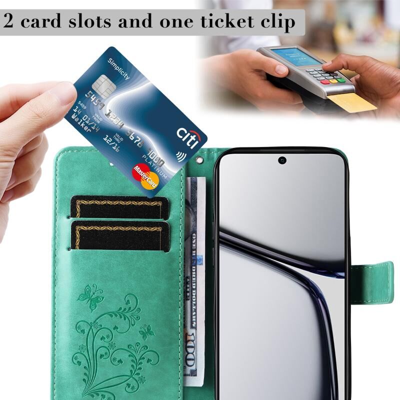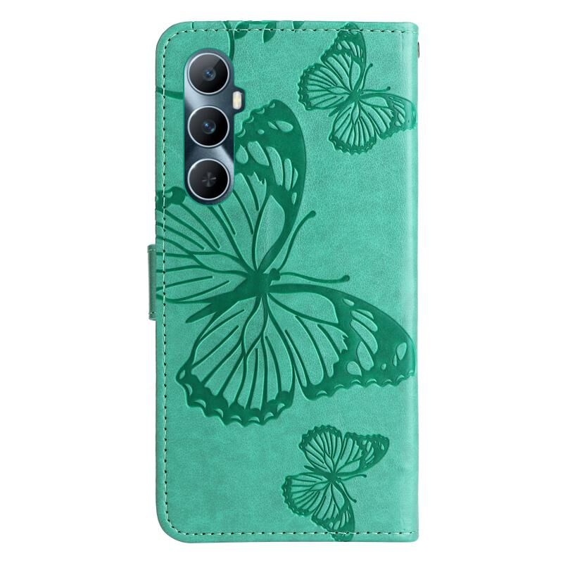 Θήκη τηλεφώνου Realme C65 4G, δερμάτινη, με ανάγλυφο σχέδιο πεταλούδας 3D (Πράσινη)