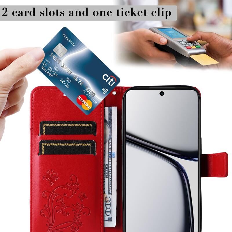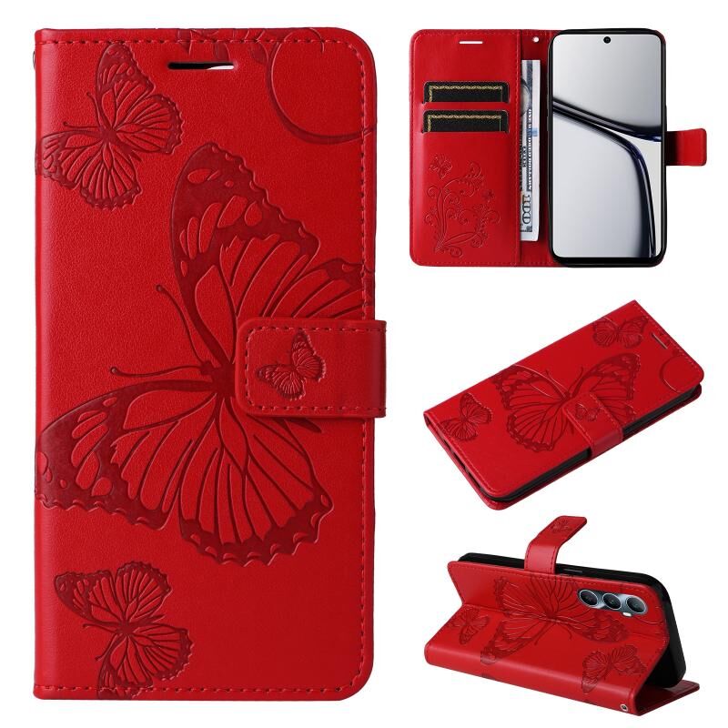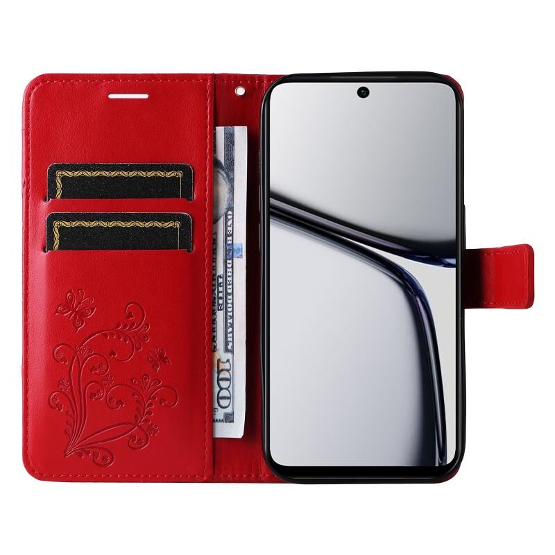 Θήκη τηλεφώνου Realme C65 4G, δερμάτινη, με ανάγλυφο σχέδιο πεταλούδας 3D (Πράσινη)