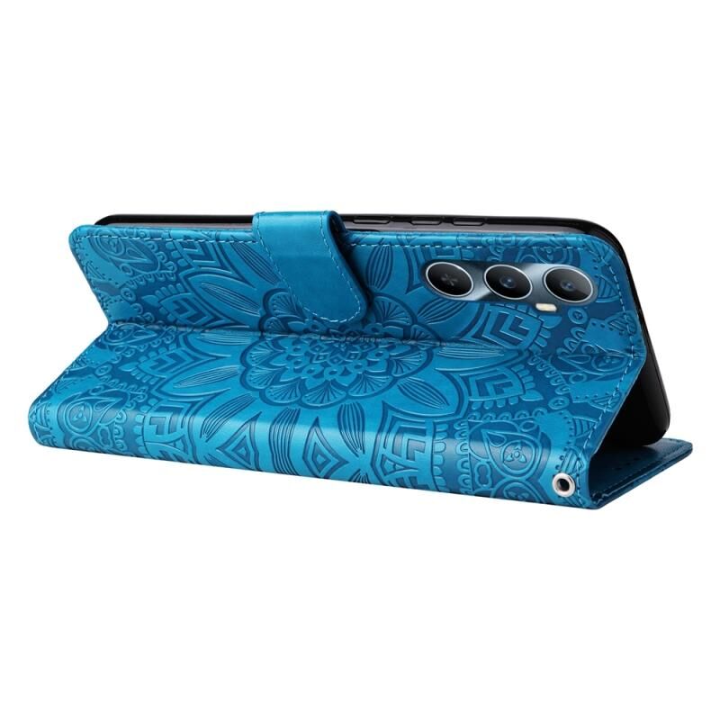 Για Realme C65 4G ανάγλυφο ηλιοτρόπιο δερμάτινη θήκη τηλεφώνου (μπλε)