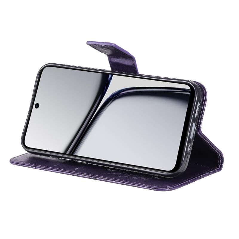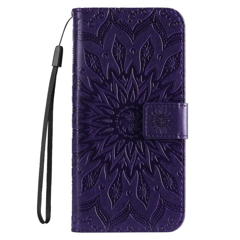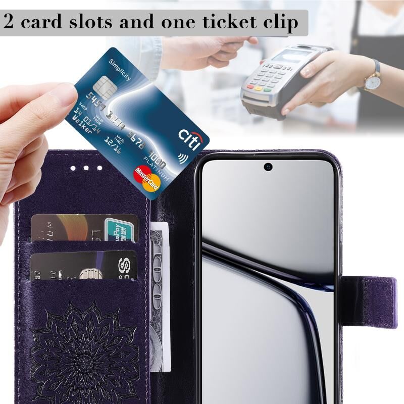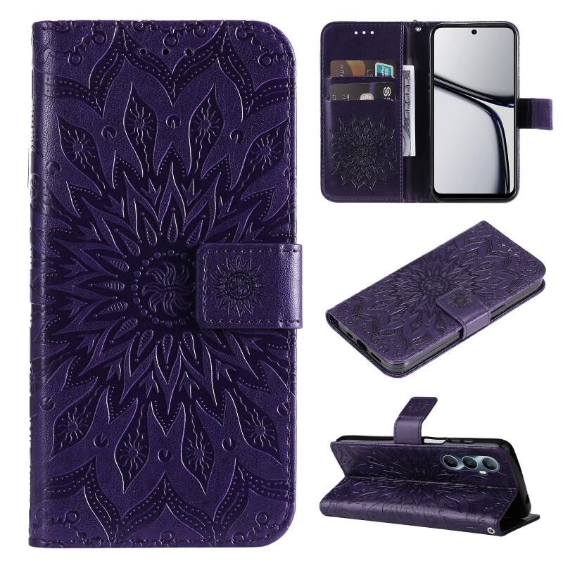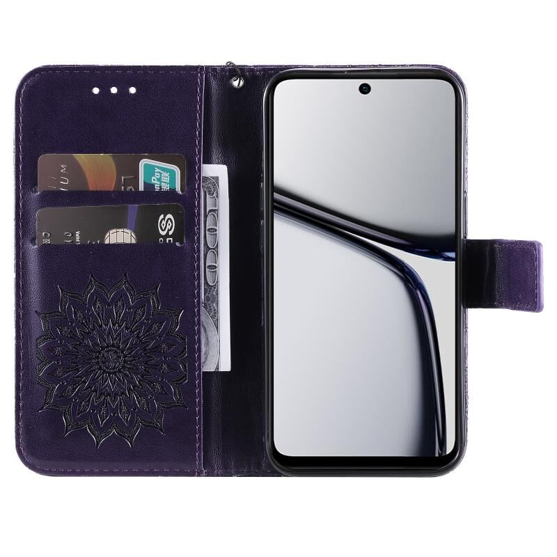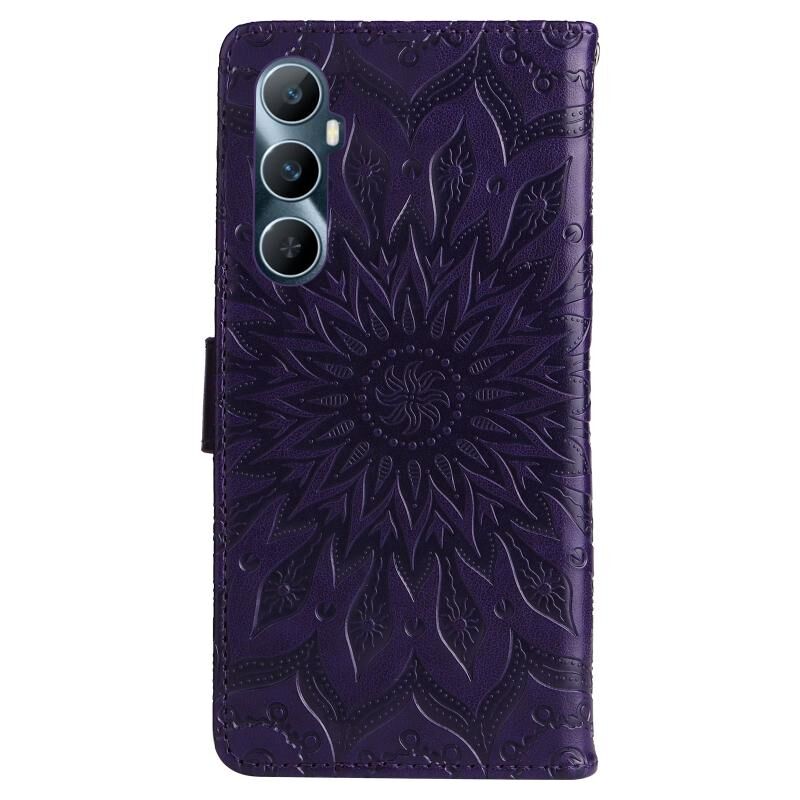 Για Realme C65 4G ανάγλυφο ηλιοτρόπιο μοτίβο Flip υπόθεση τηλεφώνου δέρμα (μωβ)
