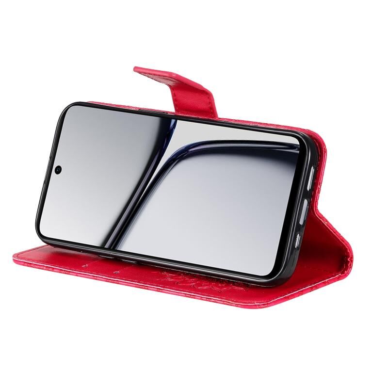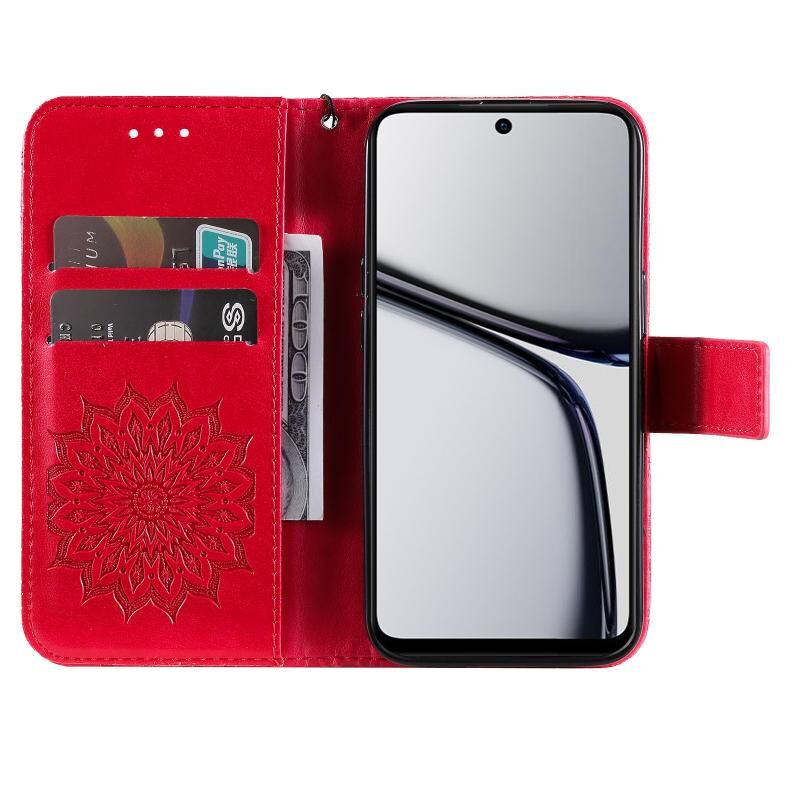 Για Realme C65 4G ανάγλυφο ηλιοτρόπιο μοτίβο Flip υπόθεση τηλεφώνου δέρμα (κόκκινο)