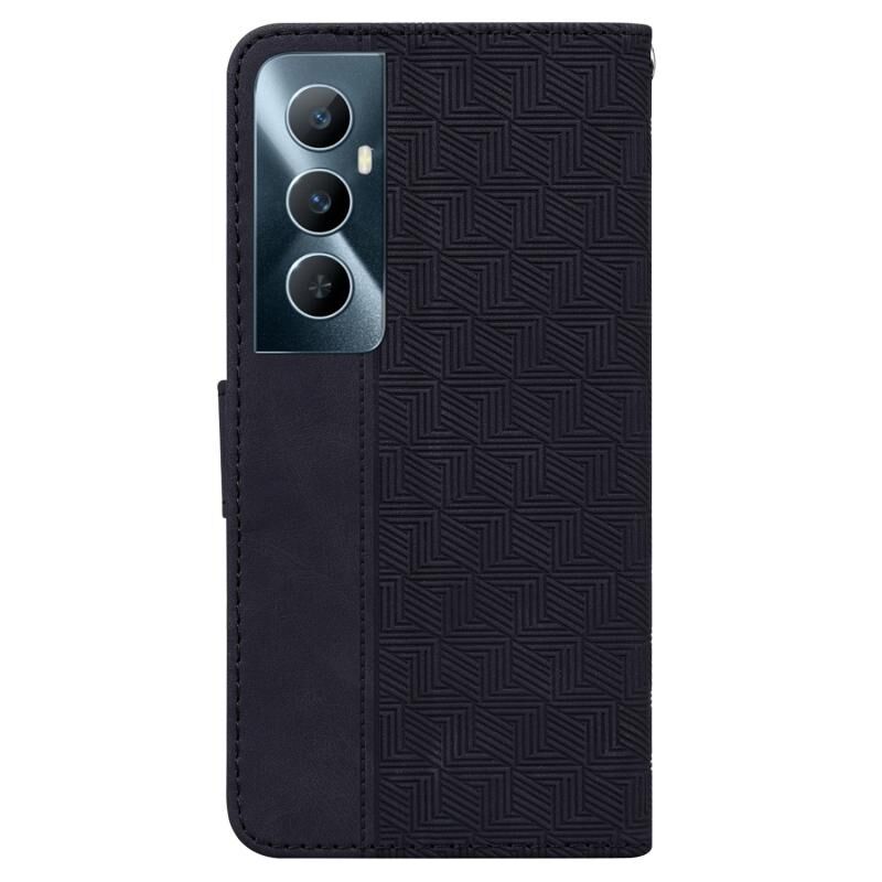 Για Realme C65 4G Γεωμετρική ανάγλυφη δερμάτινη θήκη τηλεφώνου (Μαύρο)