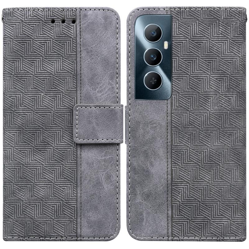 Για Realme C65 4G Γεωμετρική ανάγλυφη δερμάτινη θήκη τηλεφώνου (γκρι)