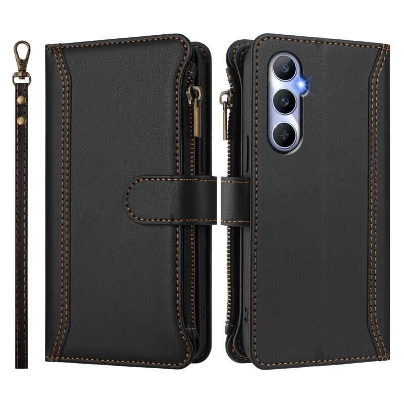 For Realme C65 4G Global Magnetic Closure 9 Card Slots Zipper Leather Case with Hand Strap(Black)