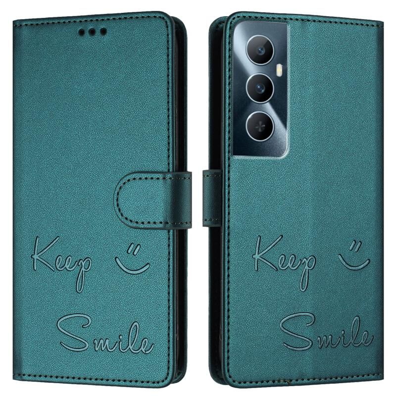 Για Realme C65 4G Global Smile ανάγλυφο RFID δερμάτινη θήκη τηλεφώνου (Peacock Green)