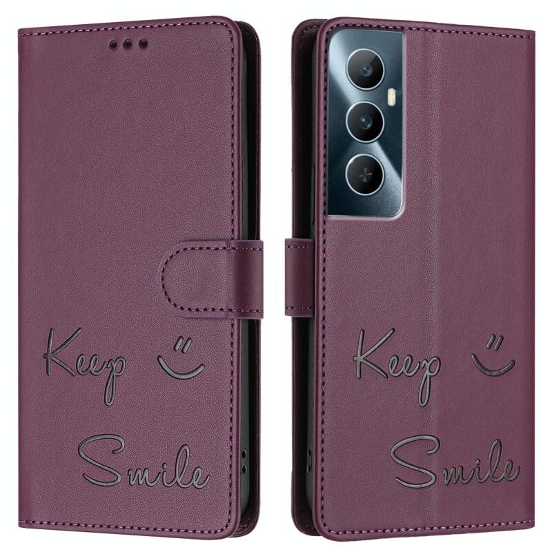 Για Realme C65 4G Παγκόσμια χαμόγελο ανάγλυφο RFID δερμάτινη θήκη τηλεφώνου (Violet)