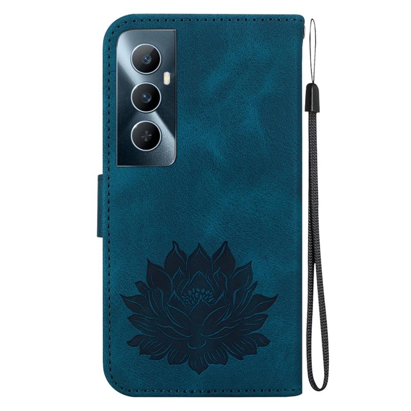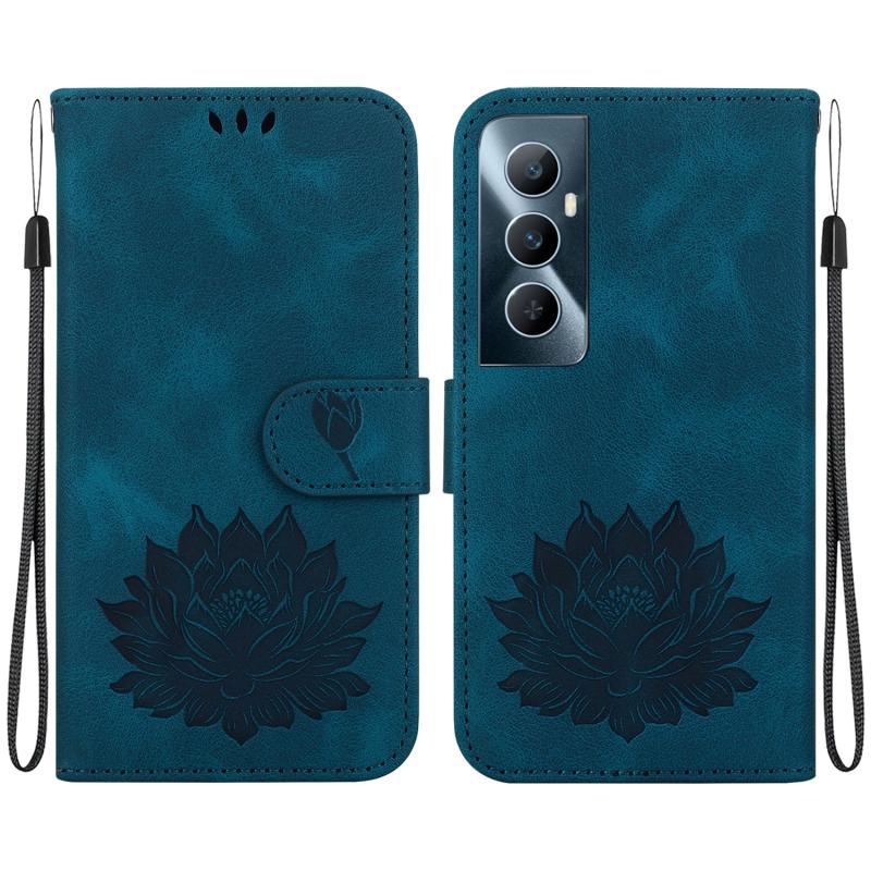 For Realme C65 4G Lotus Embossed Leather Phone Case(Dark Blue)
