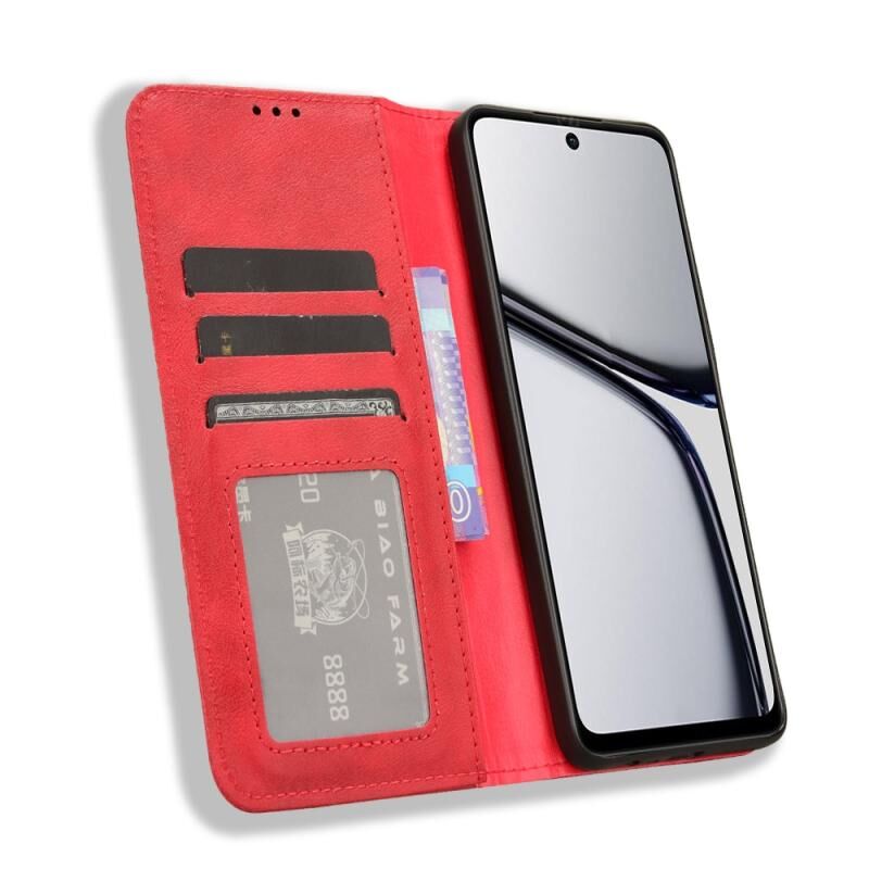 For Realme C65 4G Magnetic Buckle Retro Texture Leather Phone Case(Red)