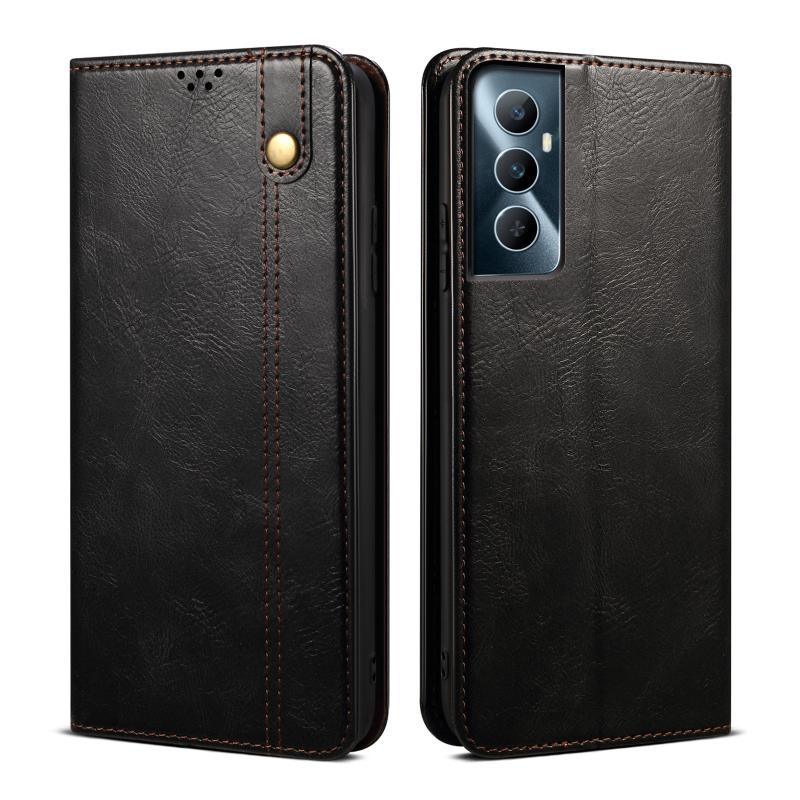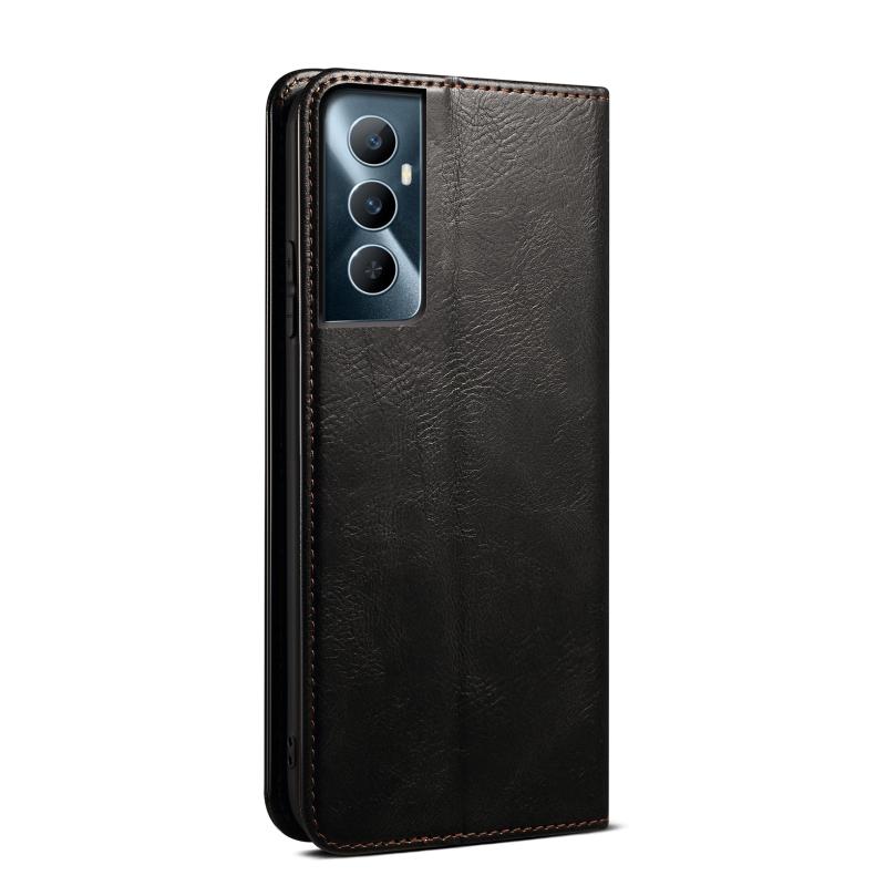 Θήκη τηλεφώνου για Realme C65 4G από δέρμα με υφή Crazy Horse και κερί λαδιού (Μαύρο)