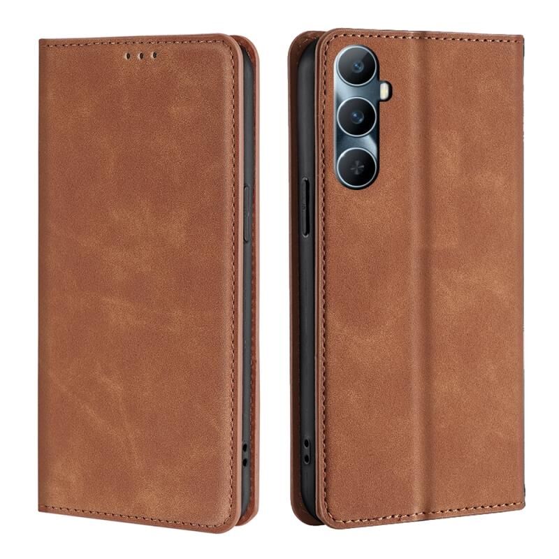 Για το Realme C65 4G Skin Feel μαγνητική δερμάτινη θήκη τηλεφώνου (ανοιχτό καφέ)