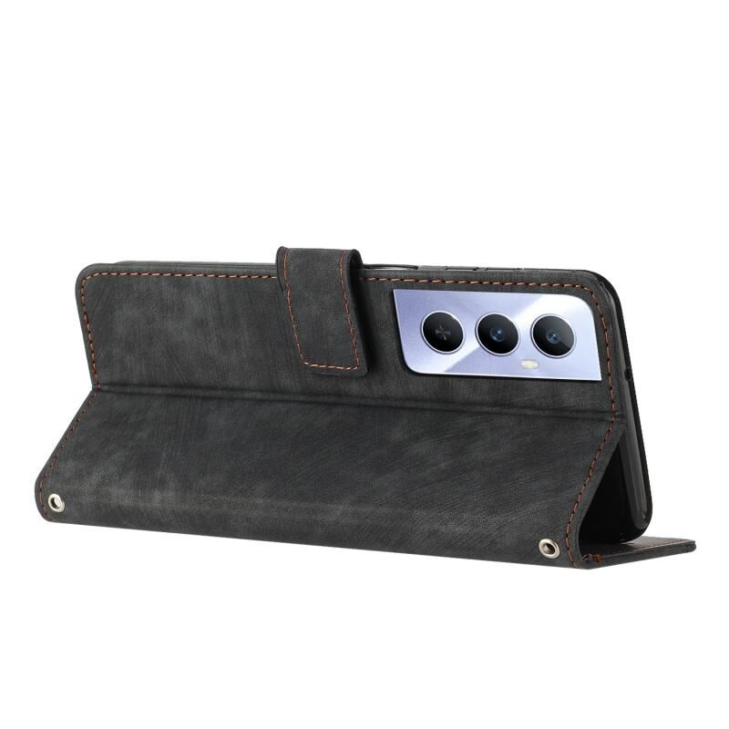 For Realme C65 4G Skin Feel Stripe Pattern Leather Phone Case with Lanyard(Black)