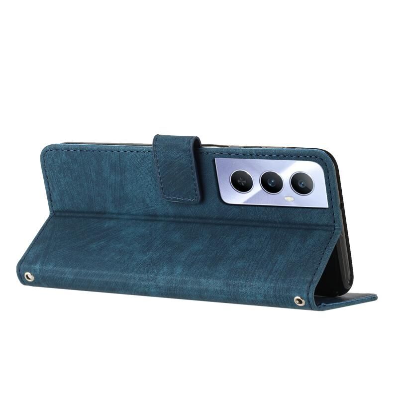 For Realme C65 4G Skin Feel Stripe Pattern Leather Phone Case with Lanyard(Blue)