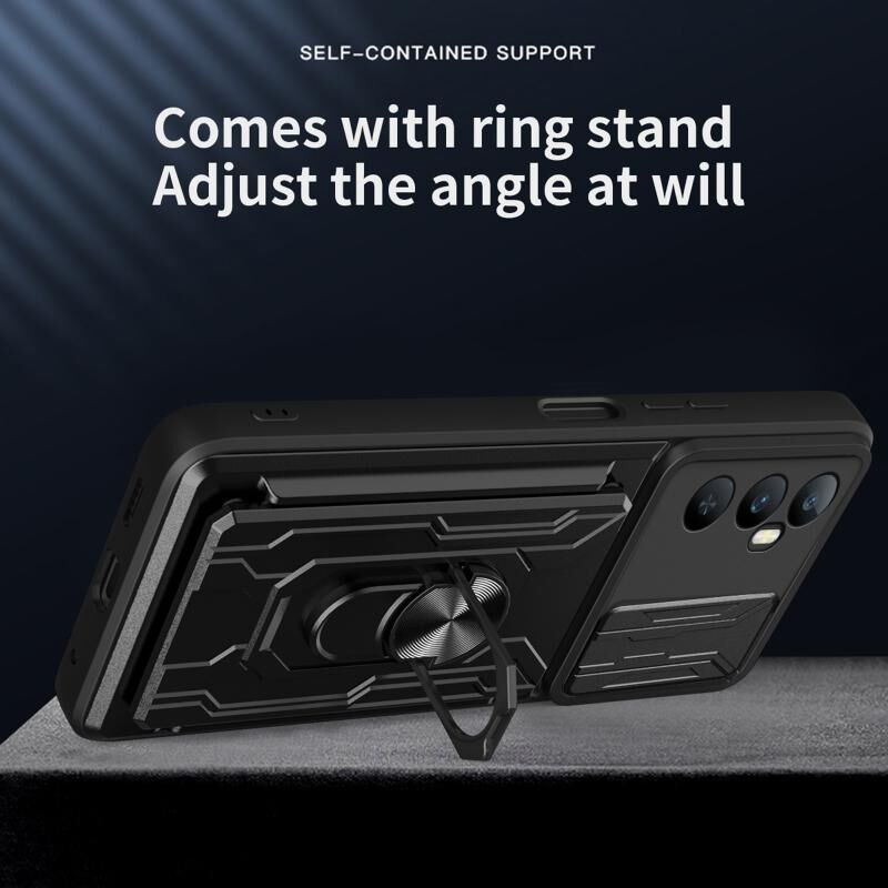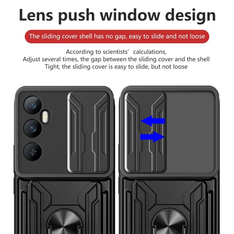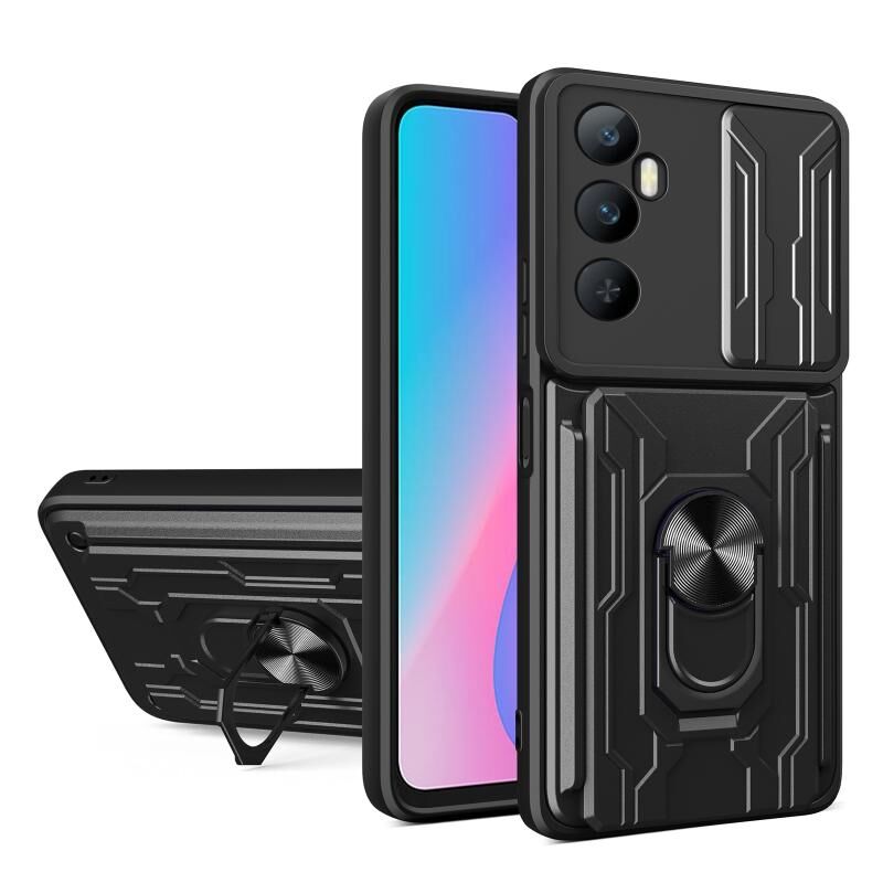 Για Realme C65 4G συρόμενη Camshield TPU + PC υπόθεση τηλεφώνου με υποδοχή κάρτας (μαύρο)