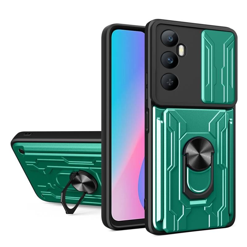Για Realme C65 4G συρόμενη Camshield TPU + PC υπόθεση τηλεφώνου με υποδοχή κάρτας (σκούρο πράσινο)