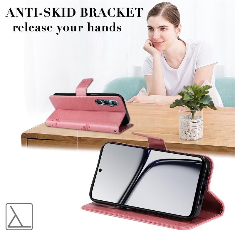 Για Realme C65 4G Tree & Cat ανάγλυφο μοτίβο Flip υπόθεση τηλεφώνου δέρμα (ροζ)